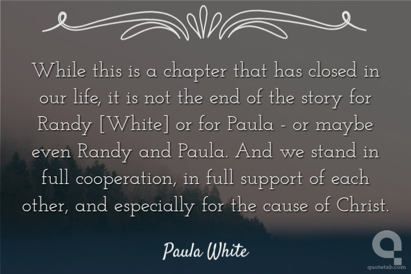 While this is a chapter that has closed in our life, it is not the end of the story for Randy [White] or for Paula - or maybe even Randy and Paula. And we stand in full cooperation, in full support of each other, and especially for the cause of Christ.