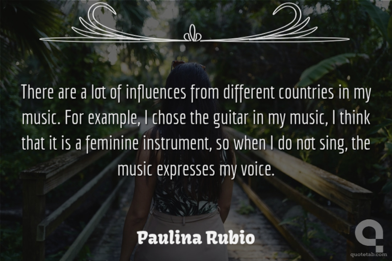 There are a lot of influences from different countries in my music. For example, I chose the guitar in my music, I think that it is a feminine instrument, so when I do not sing, the music expresses my voice.