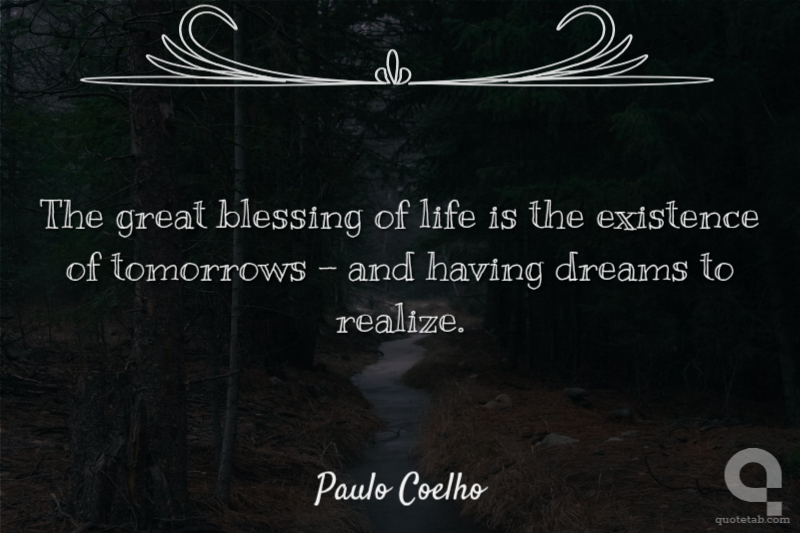 The great blessing of life is the existence of tomorrows - and having dreams to realize.