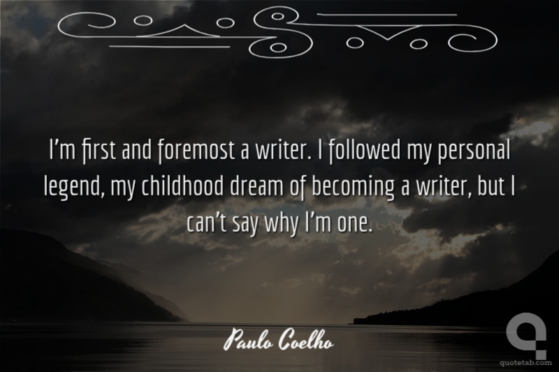I'm first and foremost a writer. I followed my personal legend, my childhood dream of becoming a writer, but I can't say why I'm one.