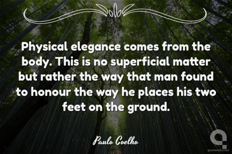 Physical elegance comes from the body. This is no superficial matter but rather the way that man found to honour the way he places his two feet on the ground.