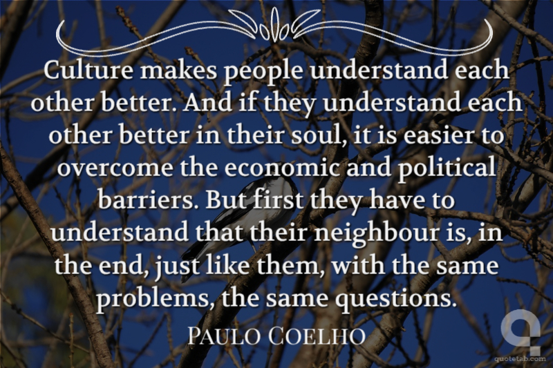 Culture makes people understand each other better. And if they understand each other better in their soul, it is easier to overcome the economic and political barriers. But first they have to understand that their neighbour is, in the end, just like them, with the same problems, the same questions.