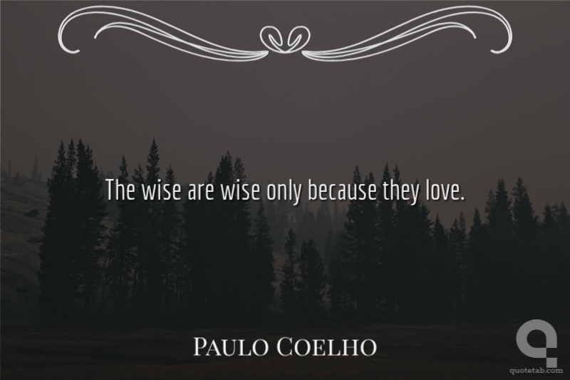 The wise are wise only because they love. The fool are fools only because they think they can understand love.