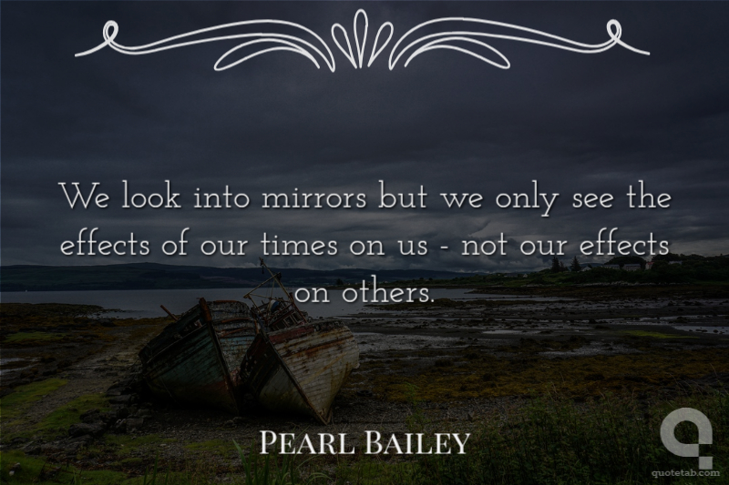 We look into mirrors but we only see the effects of our times on us -- not our effects on others.