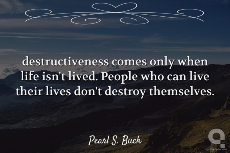 destructiveness comes only when life isn't lived. People who can live their lives don't destroy themselves.