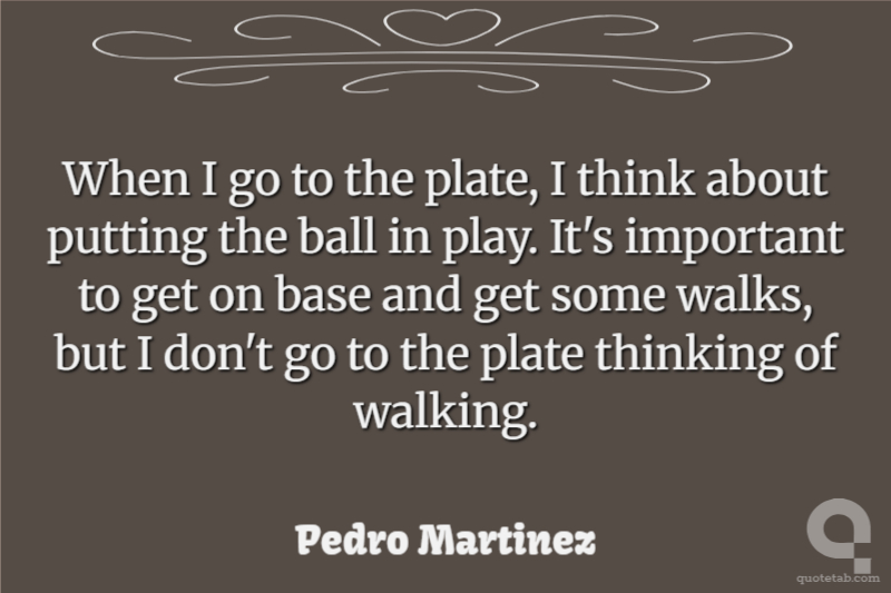 When I go to the plate, I think about putting the ball in play. It's important to get on base and get some walks, but I don't go to the plate thinking of walking.
