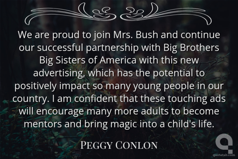 We are proud to join Mrs. Bush and continue our successful partnership with Big Brothers Big Sisters of America with this new advertising, which has the potential to positively impact so many young people in our country. I am confident that these touching ads will encourage many more adults to become mentors and bring magic into a child's life.