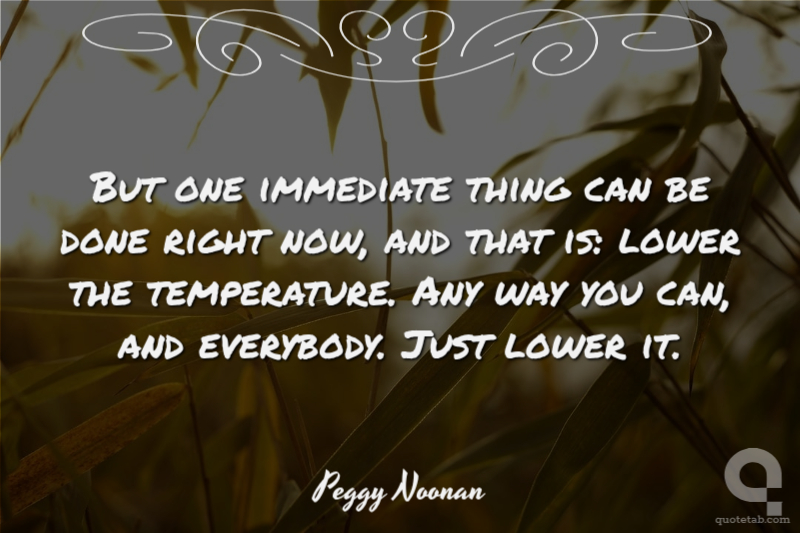 But one immediate thing can be done right now, and that is: lower the temperature. Any way you can, and everybody. Just lower it.