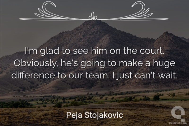 I'm glad to see him on the court. Obviously, he's going to make a huge difference to our team. I just can't wait.
