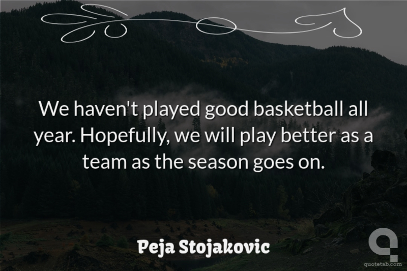 We haven't played good basketball all year. Hopefully, we will play better as a team as the season goes on.