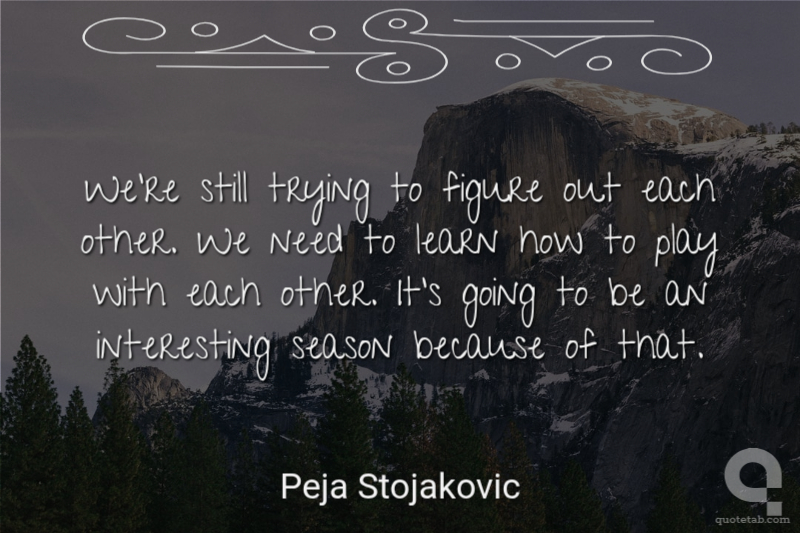 We're still trying to figure out each other. We need to learn how to play with each other. It's going to be an interesting season because of that.