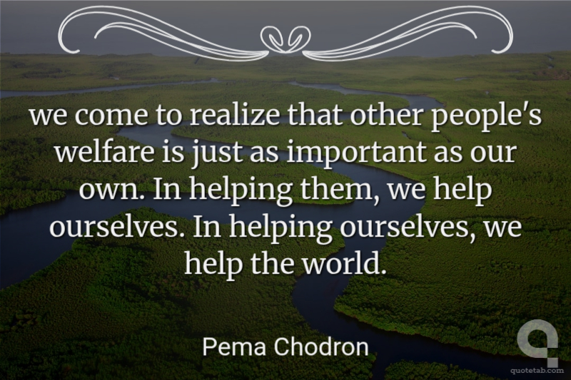 we come to realize that other people's welfare is just as important as our own. In helping them, we help ourselves. In helping ourselves, we help the world.