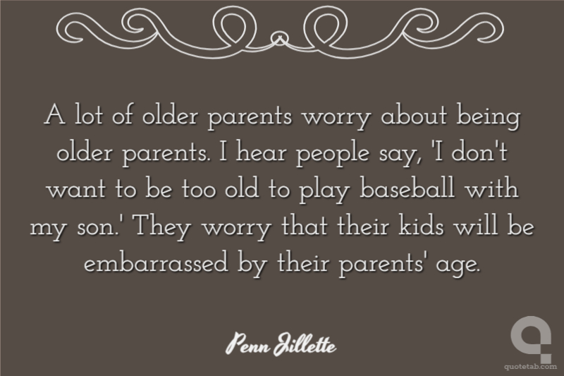 A lot of older parents worry about being older parents. I hear people say, 'I don't want to be too old to play baseball with my son.' They worry that their kids will be embarrassed by their parents' age.