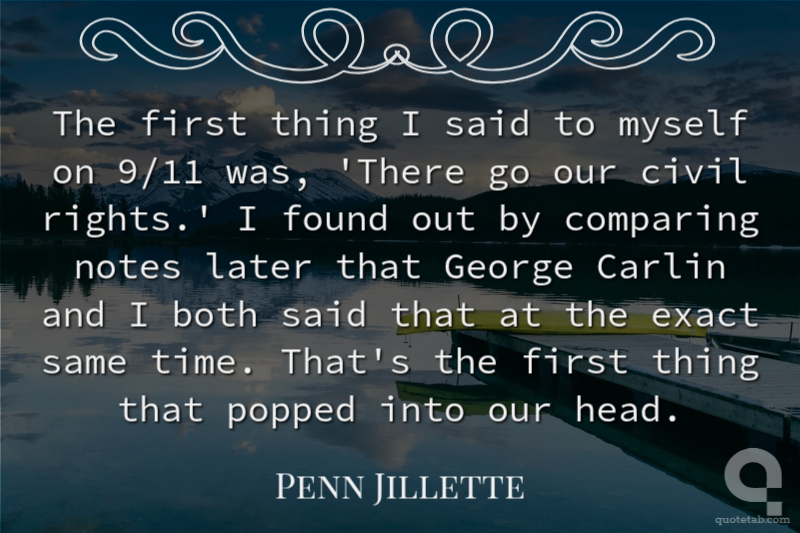 The first thing I said to myself on 9/11 was, 'There go our civil rights.' I found out by comparing notes later that George Carlin and I both said that at the exact same time. That's the first thing that popped into our head.