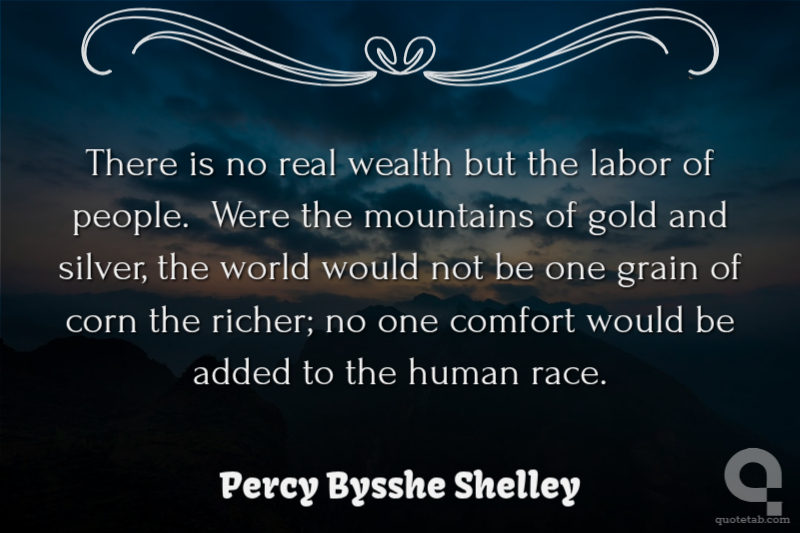 There is no real wealth but the labor of people. Were the mountains of gold and silver, the world would not be one grain of corn the richer; no one comfort would be added to the human race.