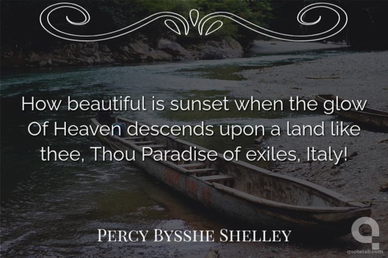 How beautiful is sunset when the glow Of Heaven descends upon a land like thee, Thou Paradise of exiles, Italy!