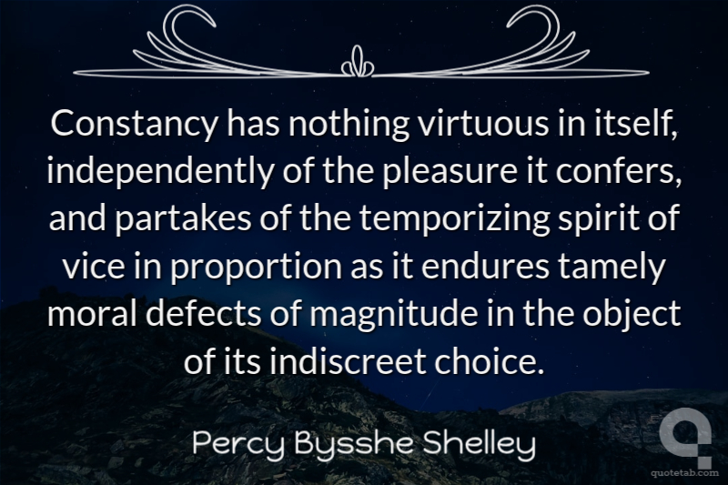 Constancy has nothing virtuous in itself, independently of the pleasure it confers, and partakes of the temporizing spirit of vice in proportion as it endures tamely moral defects of magnitude in the object of its indiscreet choice.