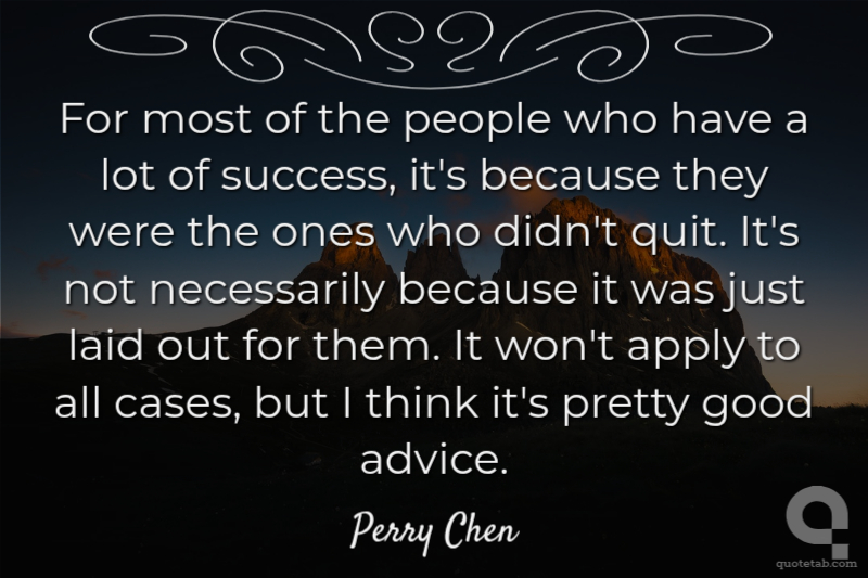For most of the people who have a lot of success, it's because they were the ones who didn't quit. It's not necessarily because it was just laid out for them. It won't apply to all cases, but I think it's pretty good advice.