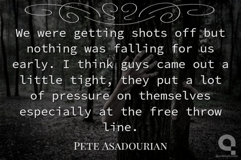 We were getting shots off but nothing was falling for us early. I think guys came out a little tight, they put a lot of pressure on themselves especially at the free throw line.