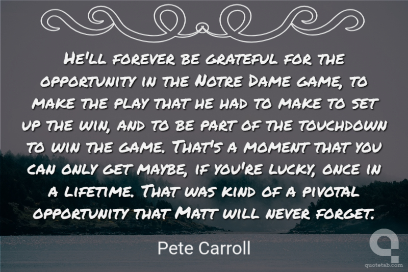 He'll forever be grateful for the opportunity in the Notre Dame game, to make the play that he had to make to set up the win, and to be part of the touchdown to win the game. That's a moment that you can only get maybe, if you're lucky, once in a lifetime. That was kind of a pivotal opportunity that Matt will never forget.
