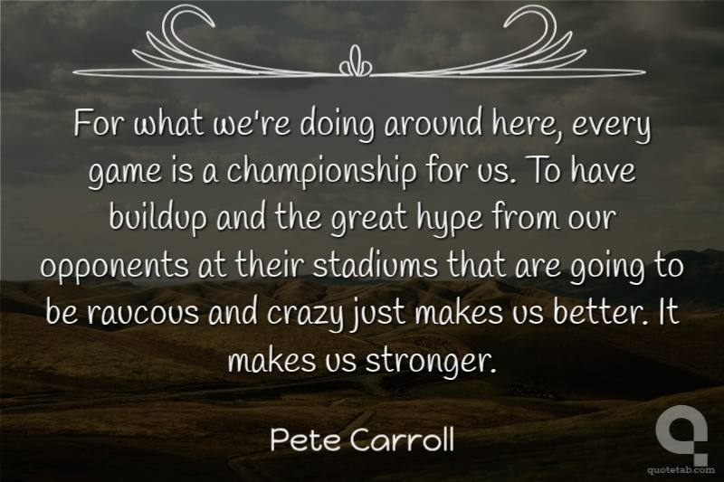 For what we're doing around here, every game is a championship for us. To have buildup and the great hype from our opponents at their stadiums that are going to be raucous and crazy just makes us better. It makes us stronger.