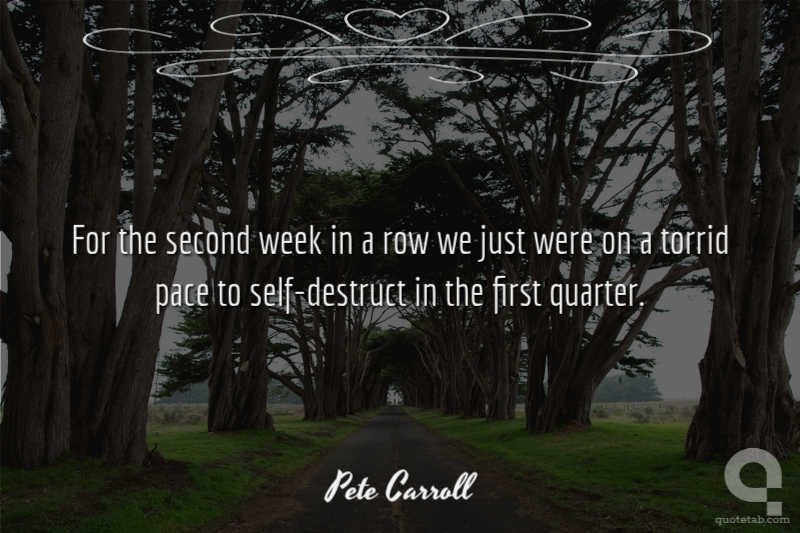 For the second week in a row we just were on a torrid pace to self-destruct in the first quarter.