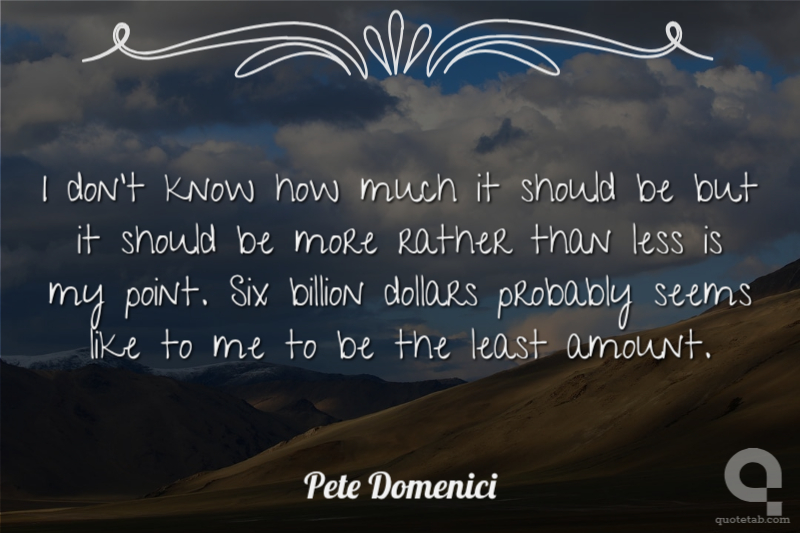 I don't know how much it should be but it should be more rather than less is my point. Six billion dollars probably seems like to me to be the least amount.