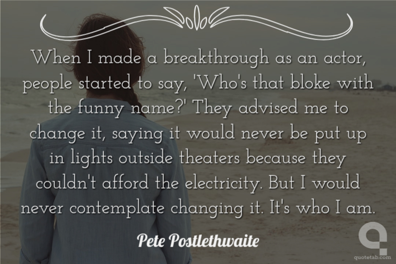 When I made a breakthrough as an actor, people started to say, 'Who's that bloke with the funny name?' They advised me to change it, saying it would never be put up in lights outside theaters because they couldn't afford the electricity. But I would never contemplate changing it. It's who I am.