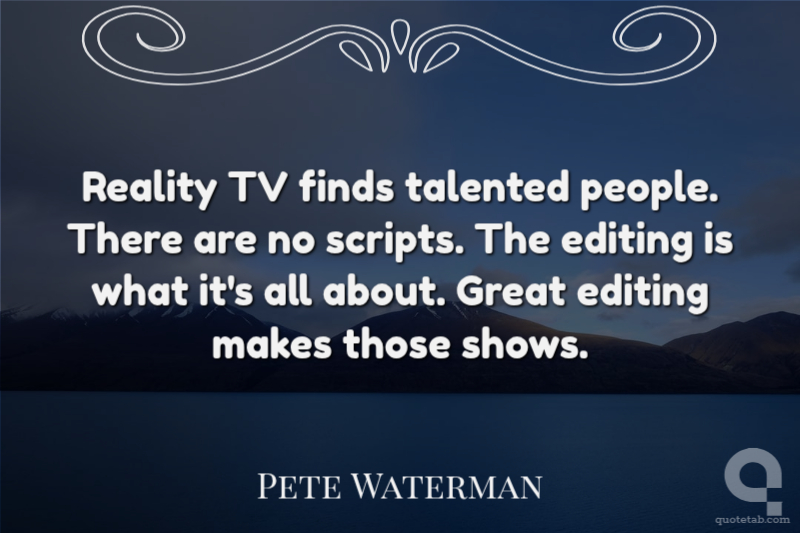 Reality TV finds talented people. There are no scripts. The editing is what it's all about. Great editing makes those shows.