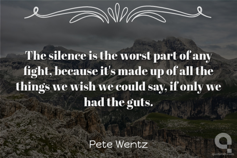 The silence is the worst part of any fight, because it's made up of all the things we wish we could say, if only we had the guts.