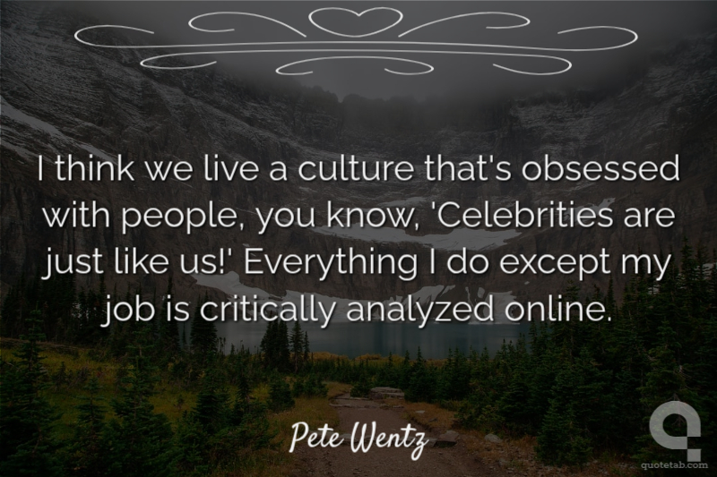 I think we live a culture that's obsessed with people, you know, 'Celebrities are just like us!' Everything I do except my job is critically analyzed online.