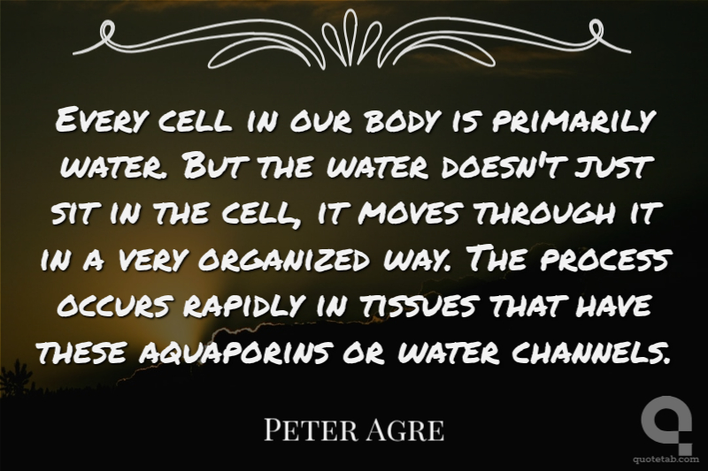 Every cell in our body is primarily water. But the water doesn't just sit in the cell, it moves through it in a very organized way. The process occurs rapidly in tissues that have these aquaporins or water channels.