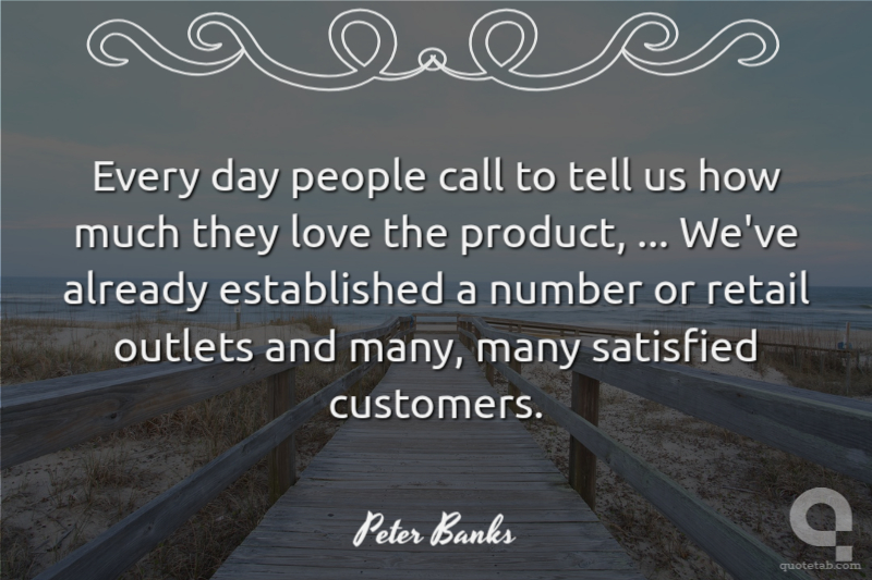 Every day people call to tell us how much they love the product, ... We've already established a number or retail outlets and many, many satisfied customers.
