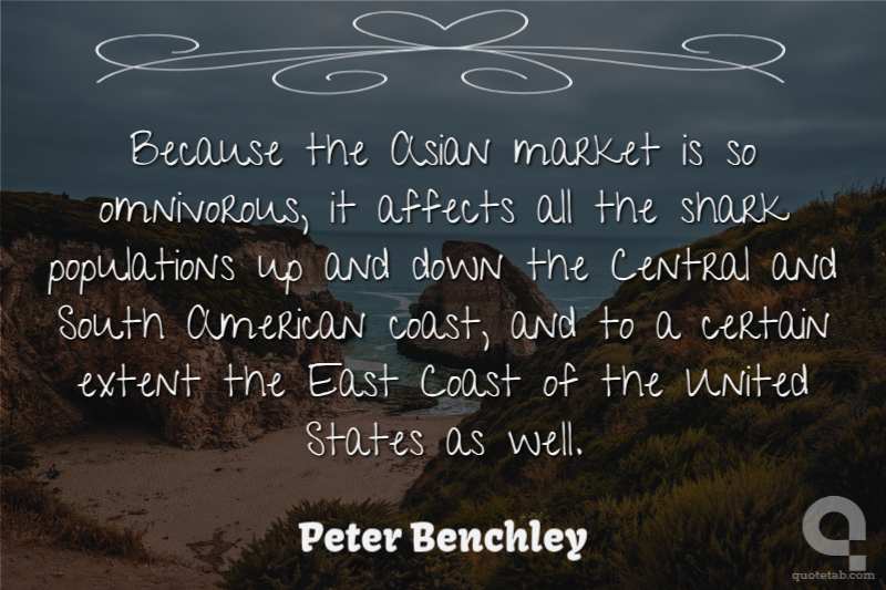 Because the Asian market is so omnivorous, it affects all the shark populations up and down the Central and South American coast, and to a certain extent the East Coast of the United States as well.