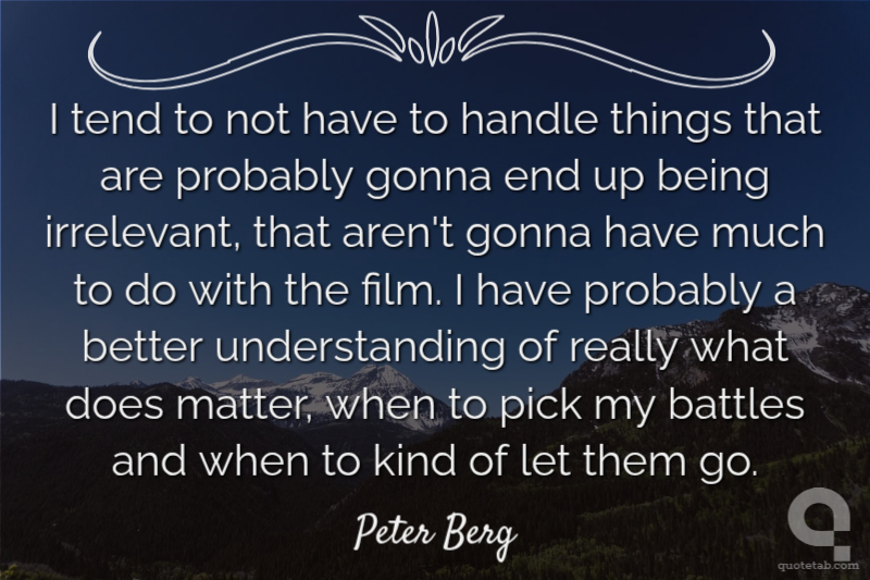 I tend to not have to handle things that are probably gonna end up being irrelevant, that aren't gonna have much to do with the film. I have probably a better understanding of really what does matter, when to pick my battles and when to kind of let them go.