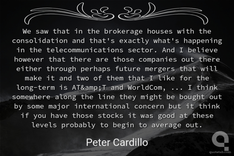 We saw that in the brokerage houses with the consolidation and that's exactly what's happening in the telecommunications sector. And I believe however that there are those companies out there either through perhaps future mergers that will make it and two of them that I like for the long-term is AT&T and WorldCom, ... I think somewhere along the line they might be bought out by some major international concern but it think if you have those stocks it was good at these levels probably to begin to average out.