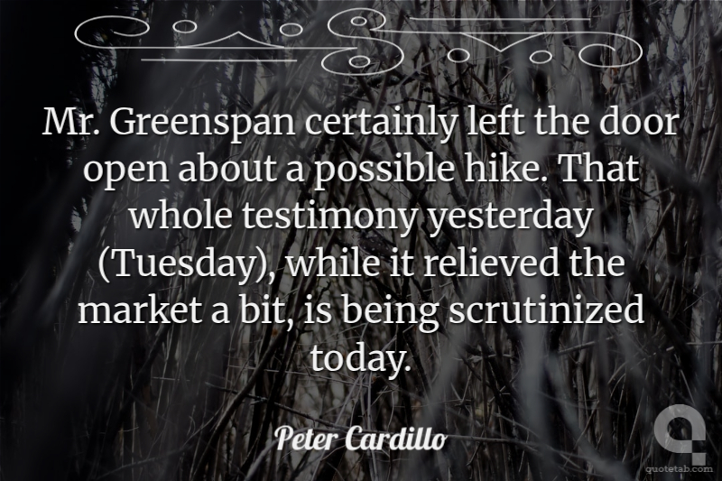 Mr. Greenspan certainly left the door open about a possible hike. That whole testimony yesterday (Tuesday), while it relieved the market a bit, is being scrutinized today.