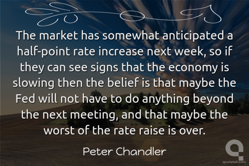 The market has somewhat anticipated a half-point rate increase next week, so if they can see signs that the economy is slowing then the belief is that maybe the Fed will not have to do anything beyond the next meeting, and that maybe the worst of the rate raise is over.