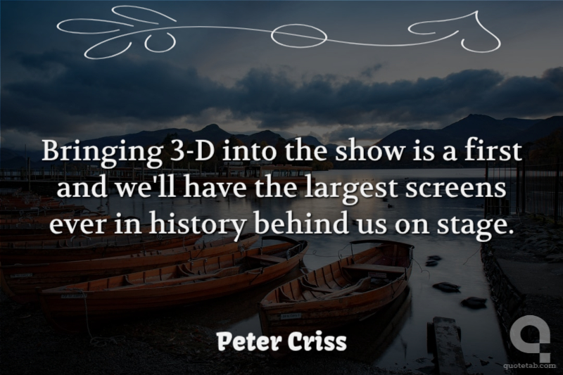 Bringing 3-D into the show is a first and we'll have the largest screens ever in history behind us on stage.