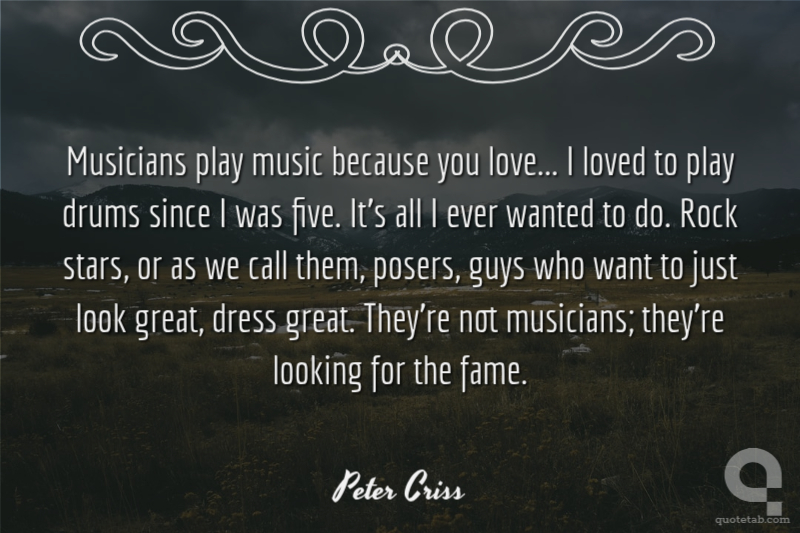 Musicians play music because you love... I loved to play drums since I was five. It's all I ever wanted to do. Rock stars, or as we call them, posers, guys who want to just look great, dress great. They're not musicians; they're looking for the fame.