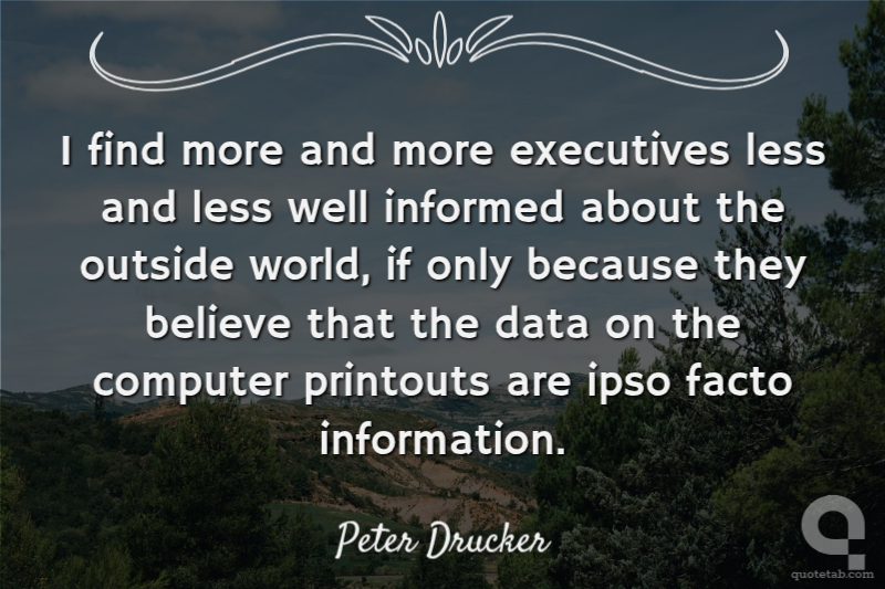 I find more and more executives less and less well informed about the outside world, if only because they believe that the data on the computer printouts are ipso facto information.