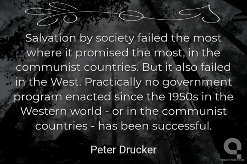 Salvation by society failed the most where it promised the most, in the communist countries. But it also failed in the West. Practically no government program enacted since the 1950s in the Western world - or in the communist countries - has been successful.