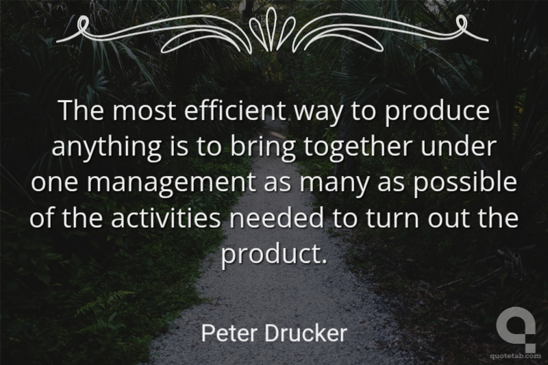 The most efficient way to produce anything is to bring together under one management as many as possible of the activities needed to turn out the product.