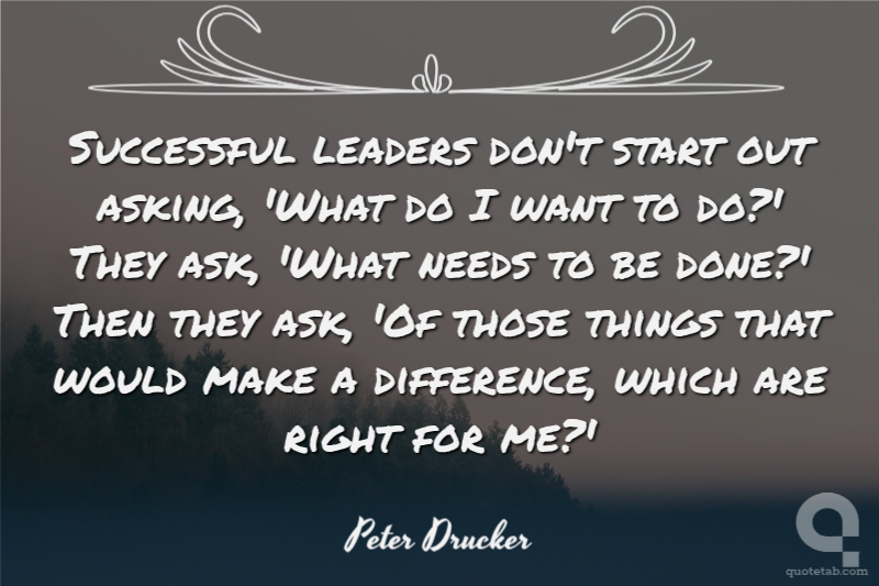 Successful leaders don't start out asking, 'What do I want to do?' They ask, 'What needs to be done?' Then they ask, 'Of those things that would make a difference, which are right for me?'