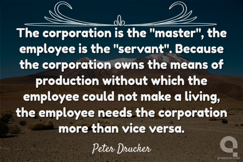 The corporation is the "master", the employee is the "servant". Because the corporation owns the means of production without which the employee could not make a living, the employee needs the corporation more than vice versa.
