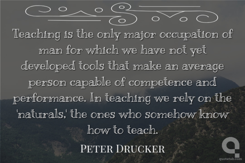Teaching is the only major occupation of man for which we have not yet developed tools that make an average person capable of competence and performance. In teaching we rely on the 'naturals,' the ones who somehow know how to teach.