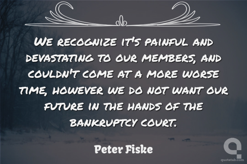 We recognize it's painful and devastating to our members, and couldn't come at a more worse time, however we do not want our future in the hands of the bankruptcy court.
