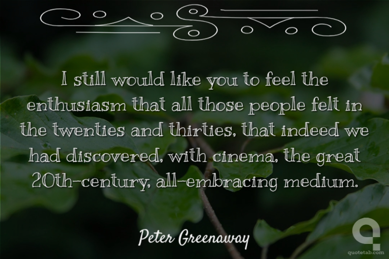 I still would like you to feel the enthusiasm that all those people felt in the twenties and thirties, that indeed we had discovered, with cinema, the great 20th-century, all-embracing medium.