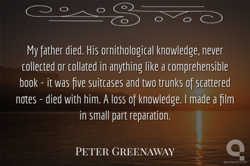 My father died. His ornithological knowledge, never collected or collated in anything like a comprehensible book - it was five suitcases and two trunks of scattered notes - died with him. A loss of knowledge. I made a film in small part reparation.