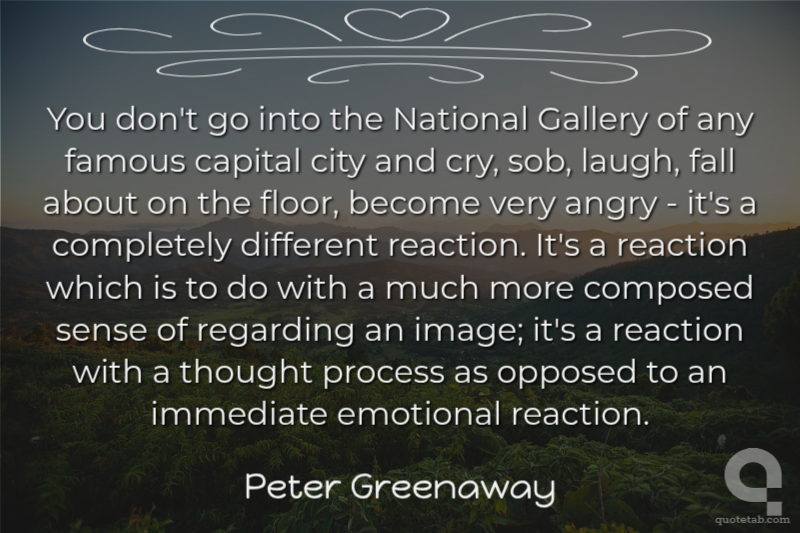 You don't go into the National Gallery of any famous capital city and cry, sob, laugh, fall about on the floor, become very angry - it's a completely different reaction. It's a reaction which is to do with a much more composed sense of regarding an image; it's a reaction with a thought process as opposed to an immediate emotional reaction.